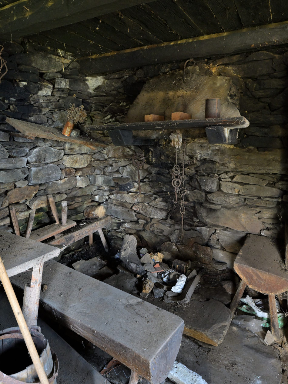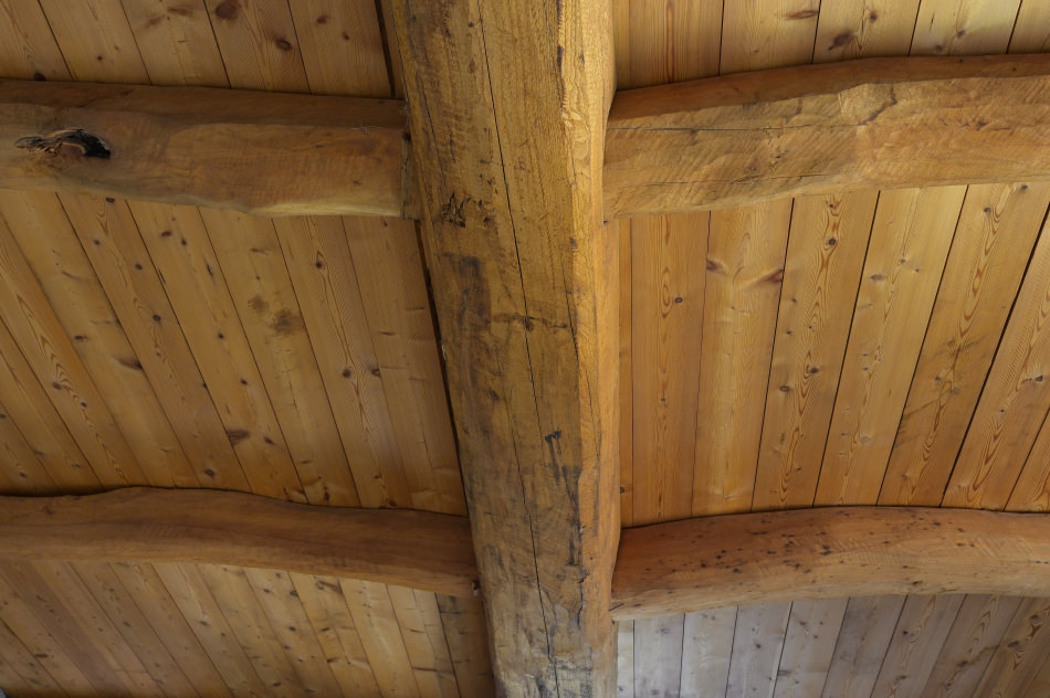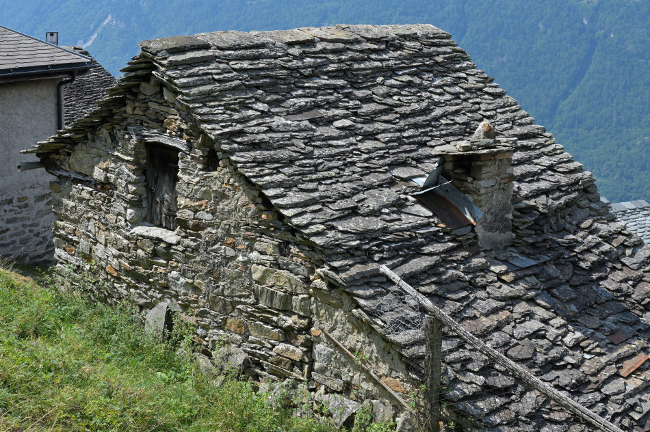 Als Baumaterial diente Kastanienholz und Steine… ein Quadratmeter Gneisdach kann bis zu 500kg/m2 wiegen… eine statische Herausforderung.