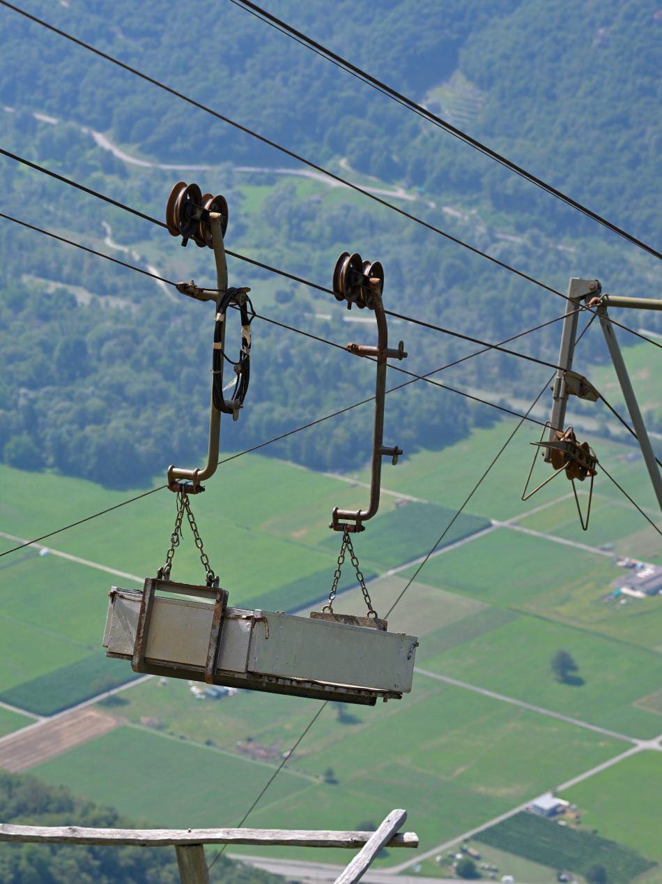 Eine kleine Materialseilbahn hilft die Grundversorgung des Dorfes zu gewährleisten.